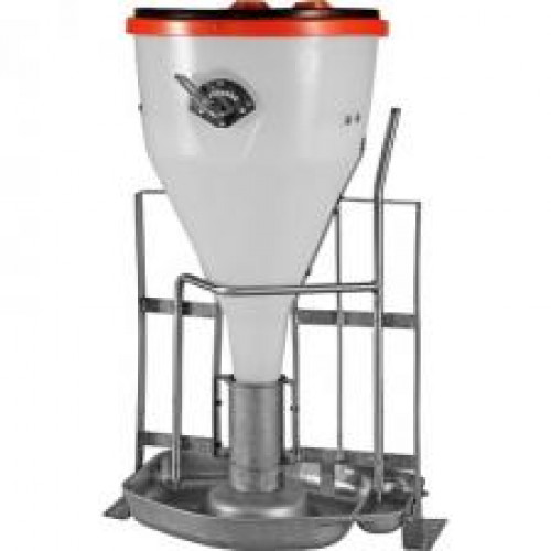 Может работать как самостоятельная кормушка или как компонент интегрированной системы дозировки. Пластиковая туба емкостью 80 кг, специальная конструкция тубы и мешалки внутри. Туба имеет крышку минимизирующую риск загрязнить корма.