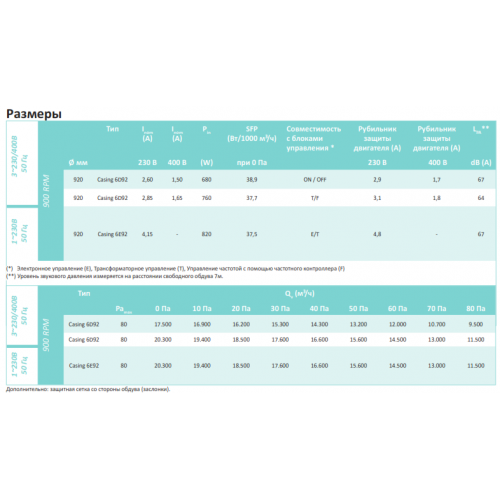 • Объём воздуха при 0 Па для панельного вентилятора 50 Гц в диапазоне от 17.500 м³/ч дo 20.300 м³/ч